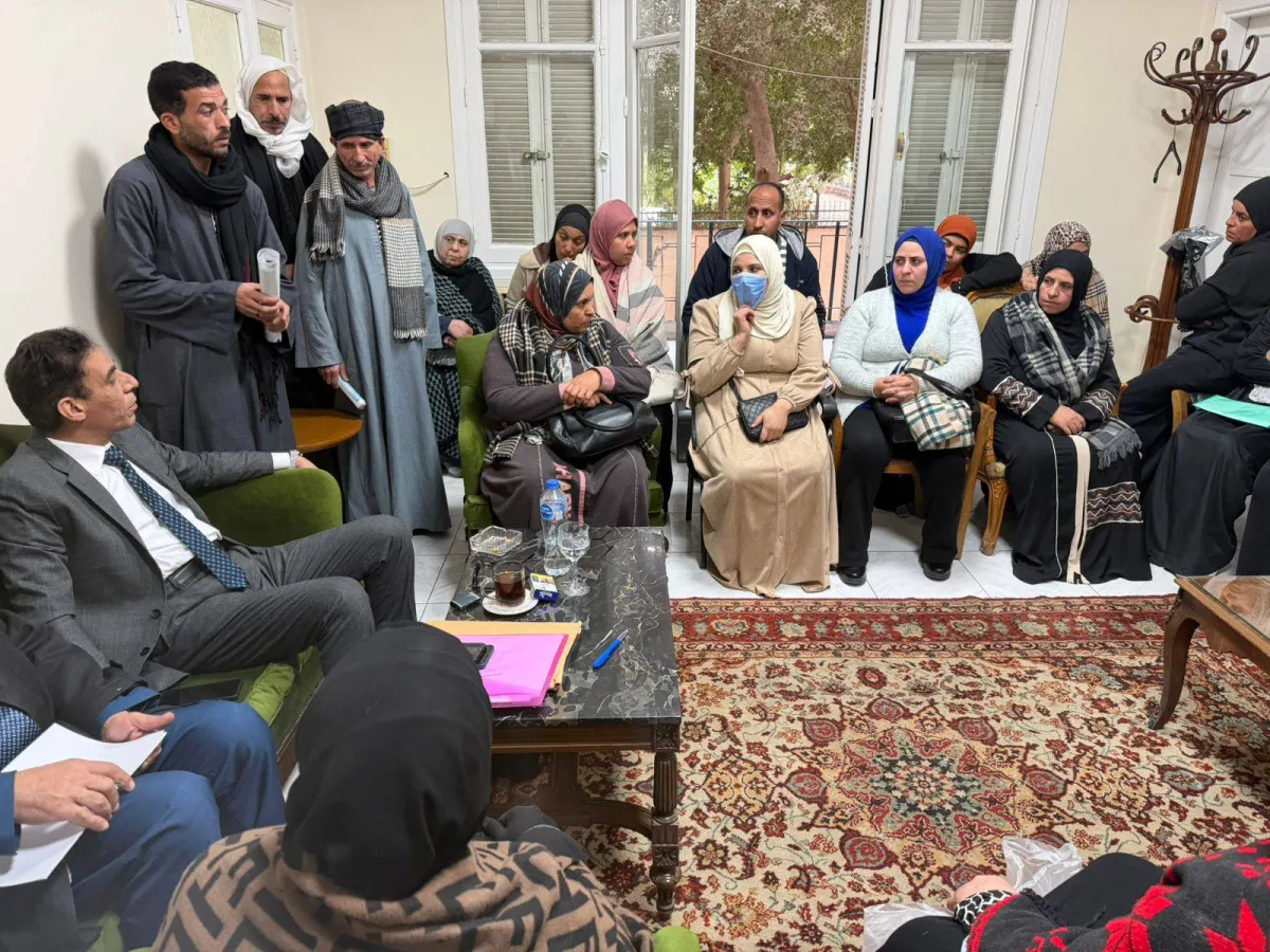 وللمرة الثانية خلال أسبوع واحد، التقى السفير حداد الجوهري، مساعد وزير الخارجية المصري للشؤون القنصلية، بعائلات مصريين متغيبين في ليبيا، لبحث أزمتهم وسبل إعادتهم إلى البلاد.