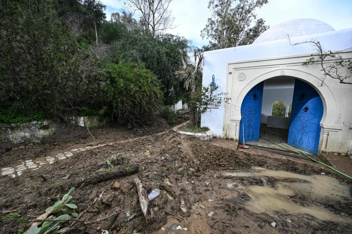 آثار الدمار على سواحل تونس بفعل عاصفة «هاري» التي ضربت البحر المتوسط في يناير الماضي (أ.ف.ب)