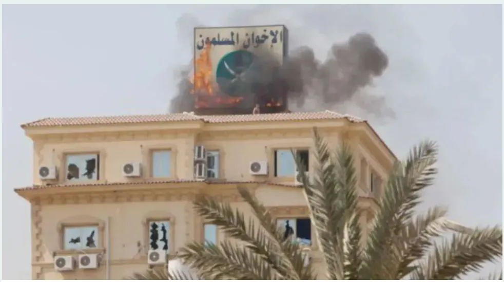 مقر «الإخوان» محترقاً في القاهرة صيف 2013 (غيتي)
