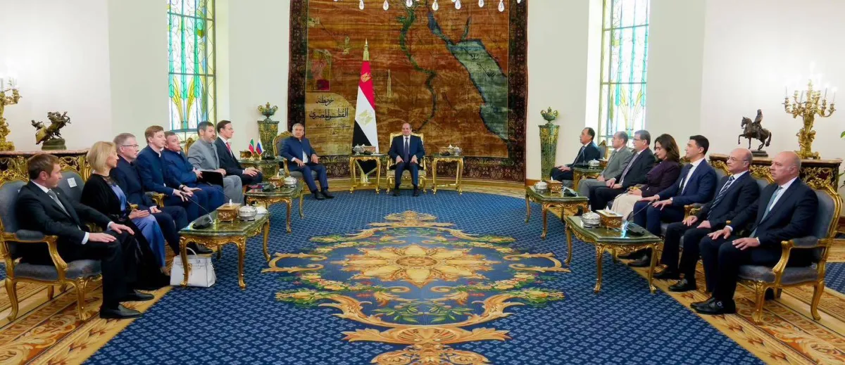 وبحسب المتحدث الرسمي للرئاسة المصرية، محمد الشناوي، الثلاثاء، فإن رئيس جمهورية تتارستان بروسيا الاتحادية أعرب عن بالغ امتنانه للاجتماع مع الرئيس السيسي، وعلى حفاوة الاستقبال التي حظي بها خلال زيارته، مؤكداً الاهتمام الكبير لحكومة تتارستان بتعزيز العلاقات مع مصر في المجالات كافة، وعلى ما شهدته تلك العلاقات من تطور منذ زيارته الأخيرة للقاهرة في عام 2018 وزيارة الرئيس المصري التاريخية لكازان في عام 2024 للمشاركة في «قمة بريكس».