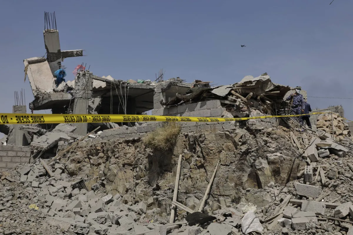 حطام مبنى مدمر قيل إنه تعرض لغارات جوية أميركية في صنعاء باليمن (أ.ب)