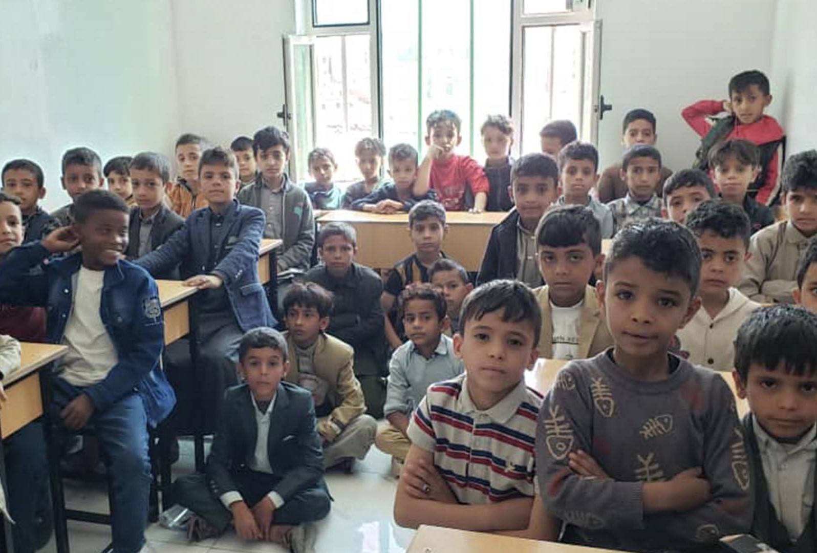 أطفال يمنيون يتلقون التعبئة الفكرية في مدرسة خاضعة للحوثيين بصنعاء (إعلام حوثي)
