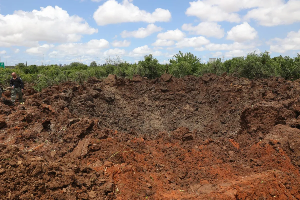 جانب من الأضرار جراء سقوط صاروخ أطلقه الحوثيون قرب مطار بن غوريون في تل أبيب (إ.ب.أ)