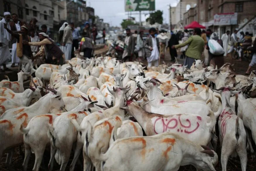 تشهد أسواق المواشي في محافظة تعز (الجنوب الغربي) تراجعاً في الإقبال على شراء الأضاحي بعد أن ارتفعت أسعارها بشكل غير مسبوق نظراً للتدهور الحاصل للعملة المحلية، حيث وصل سعر الدولار الأميركي إلى 2530 ريالاً.