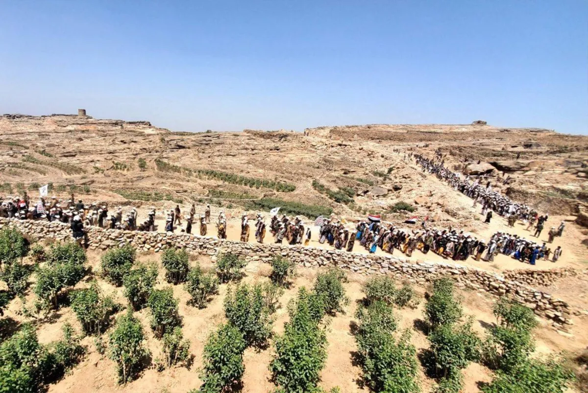 الحوثيون أجبروا السكان في حجة على تنظيم عروض ومسيرات عسكرية (إكس)