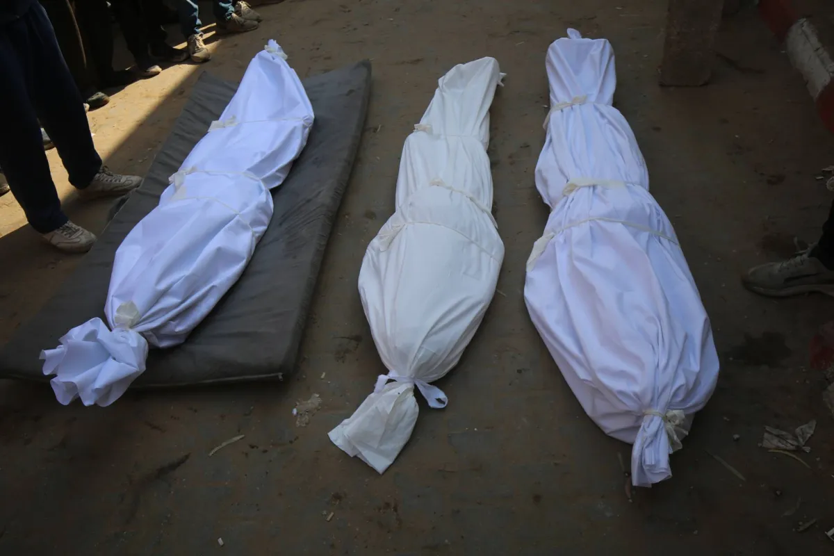 جثث فلسطينيين قُتلوا بنيران إسرائيلية في أثناء محاولتهم الحصول على مساعدة في مستشفى الشفاء (إ.ب.أ)