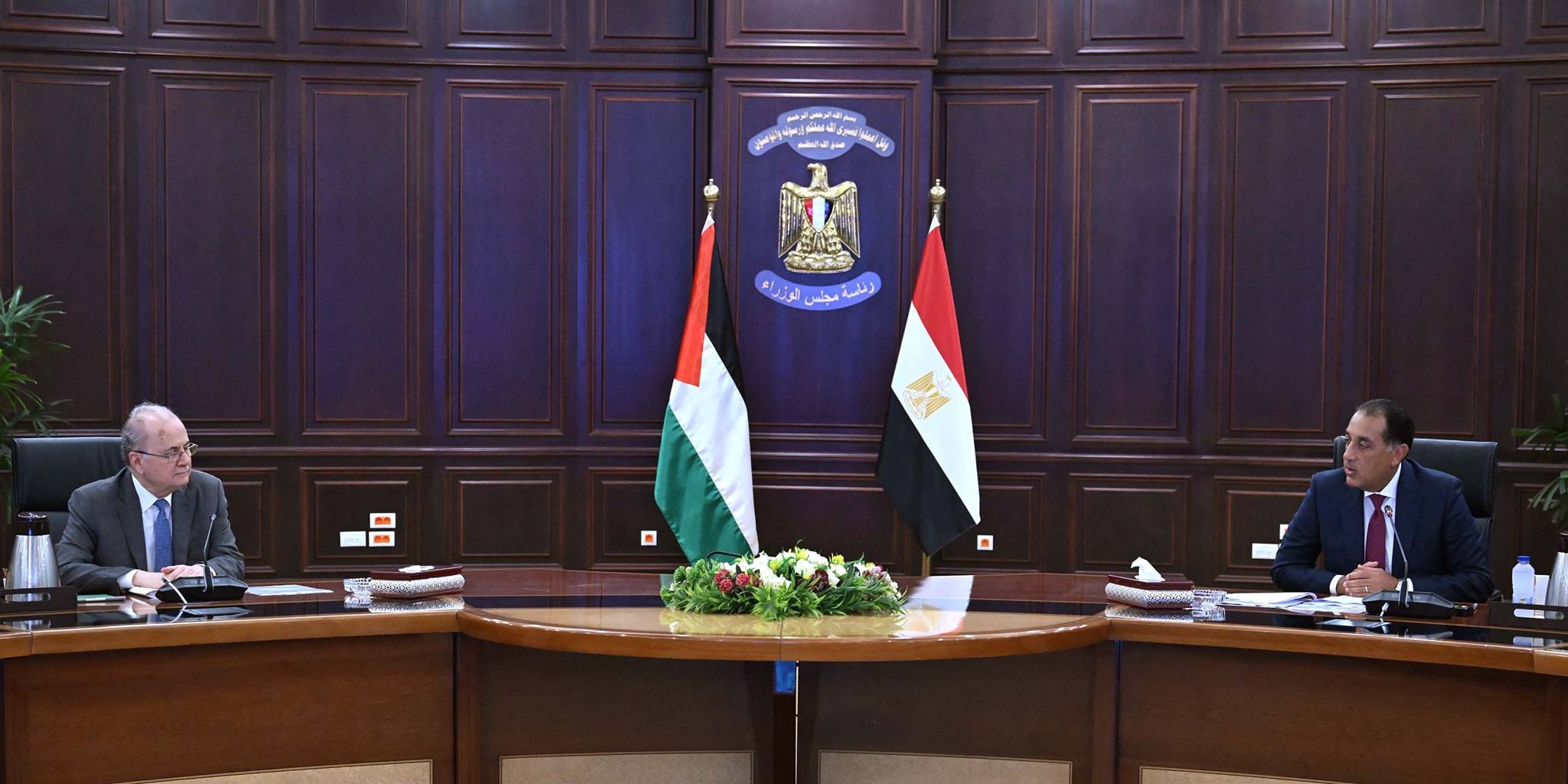 واستقبل مدبولي نظيره الفلسطيني في مدينة العلمين الجديدة بالساحل الشمالي، وأجرى محادثات موسعة بحضور وفدي البلدين، تناولت مستجدات الأوضاع في الأراضي الفلسطينية المحتلة، حسب إفادة لمجلس الوزراء المصري.