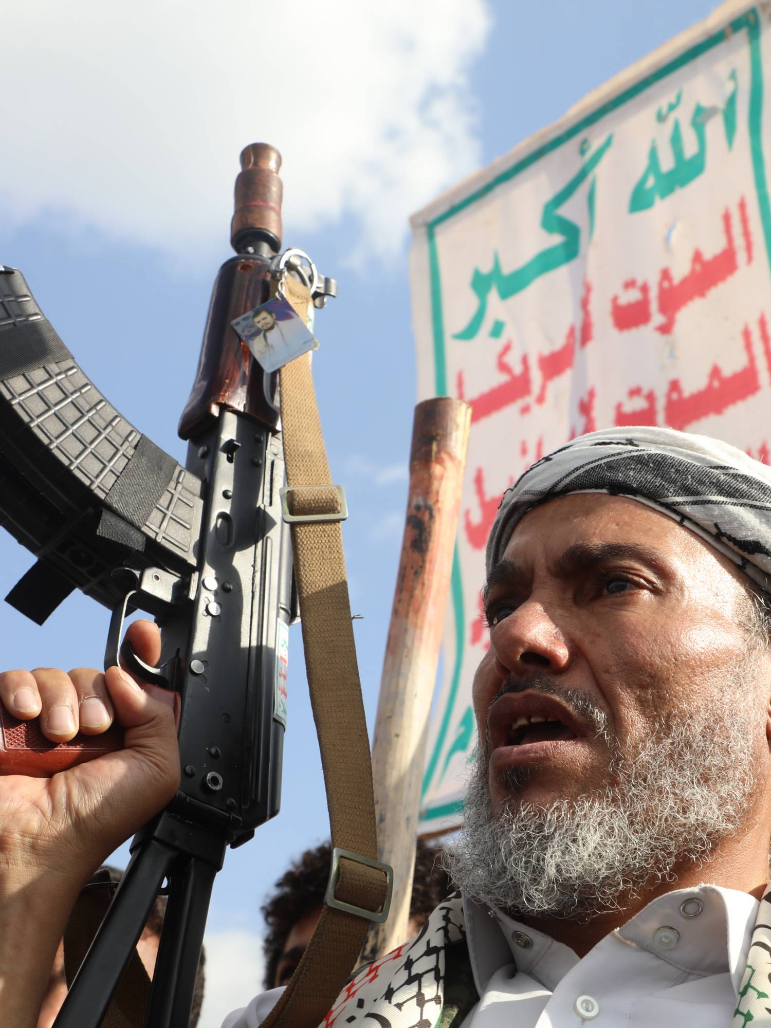 مسلح حوثي في صنعاء خلال حشد دعا إليه زعيم الجماعة (أ.ب)