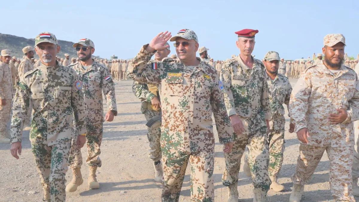 عضو المجلس القيادة الرئاسي اليمني طارق صالح خلال تفقد وحدات عسكرية من قواته (سبأ)