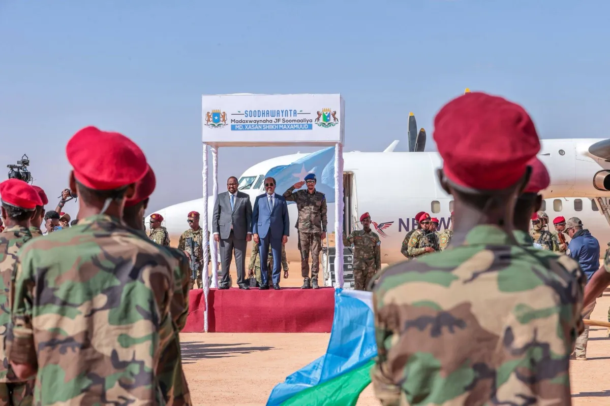 الرئيس الصومالي حسن شيخ محمود خلال زيارته لاسعانود لحضور مراسم تنصيب رئيس ولاية شمال شرقي الصومال (حساب الرئيس الصومالي على منصة «فيسبوك»)