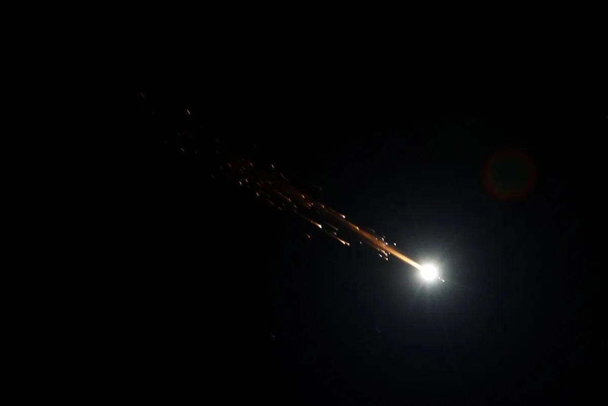 صواريخ إيرانية تتجه نحو إسرائيل كما تظهر من الخليل بالضفة الغربية المحتلة اليوم (رويترز)