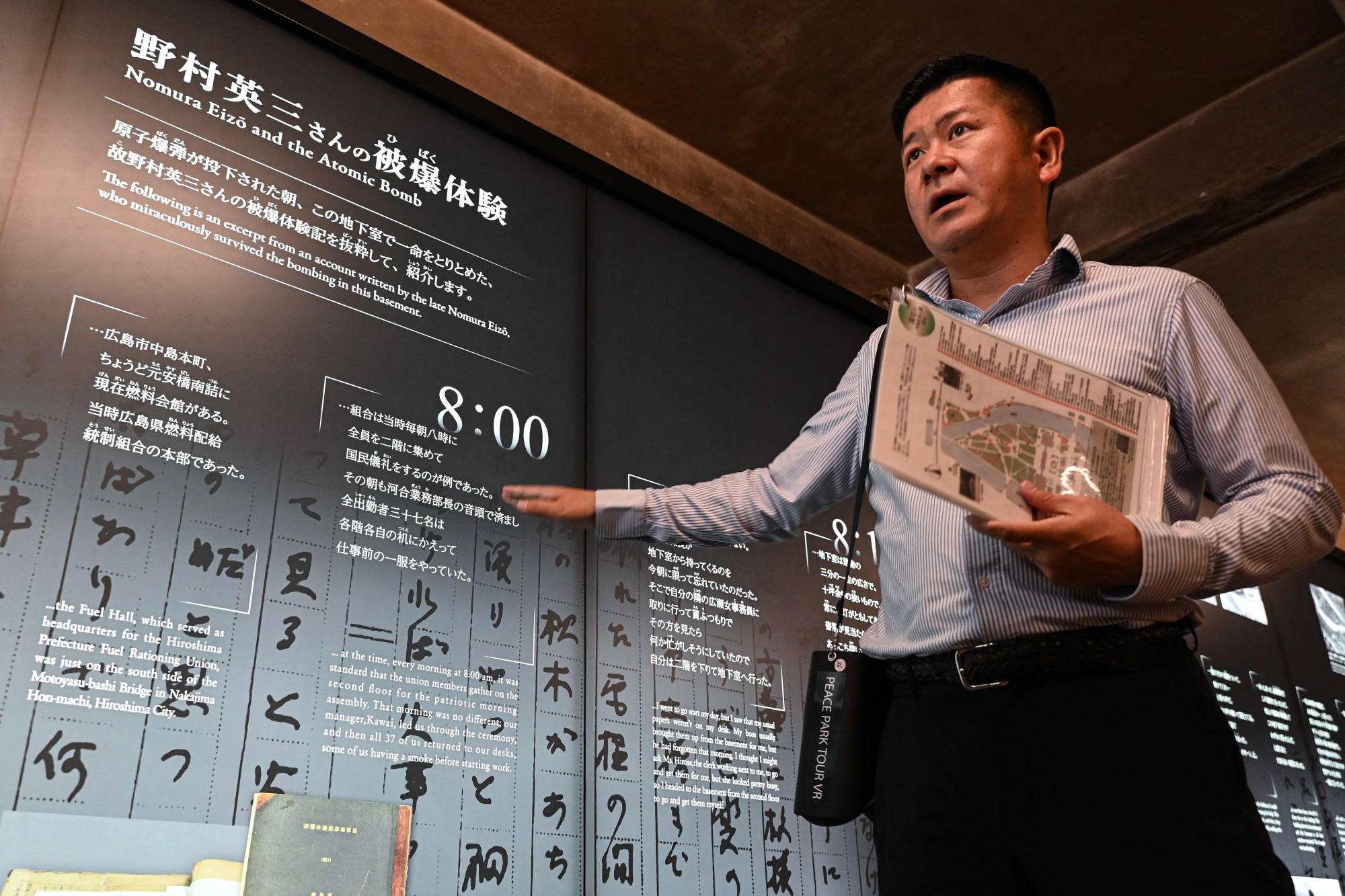 وقبل إطلاقه الجولة، طلب من هيروشي هارادا، وهو أحد الناجين من الهجوم والمدير السابق لمتحف هيروشيما، تجربتها.