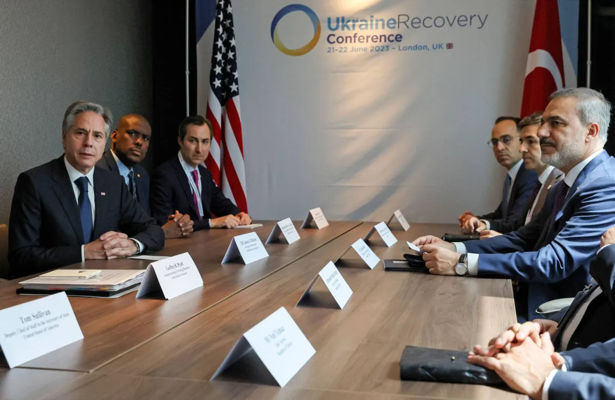 ورداً على مطالبة الوزير الأميركي، قال وزير الخارجية هاكان فيدان إنه حضر إلى لندن لإبداء دعم بلده لأوكرانيا. ونقلت وسائل الإعلام التركية قوله لبلينكن، عقب الاجتماع: «كما تعلم، قد لا نتفق على كل شيء، لكن تحالفنا طويل الأمد في (الناتو) ومنصات أخرى يجبرنا على مواصلة العمل معاً». وقال بلينكن إن هناك عديداً من القضايا التي تتعين على البلدين معالجتها، مثل «قمة الناتو المقبلة، وعملية انضمام السويد، والتعاون الدفاعي، والطاقة، والتعاون الاقتصادي».