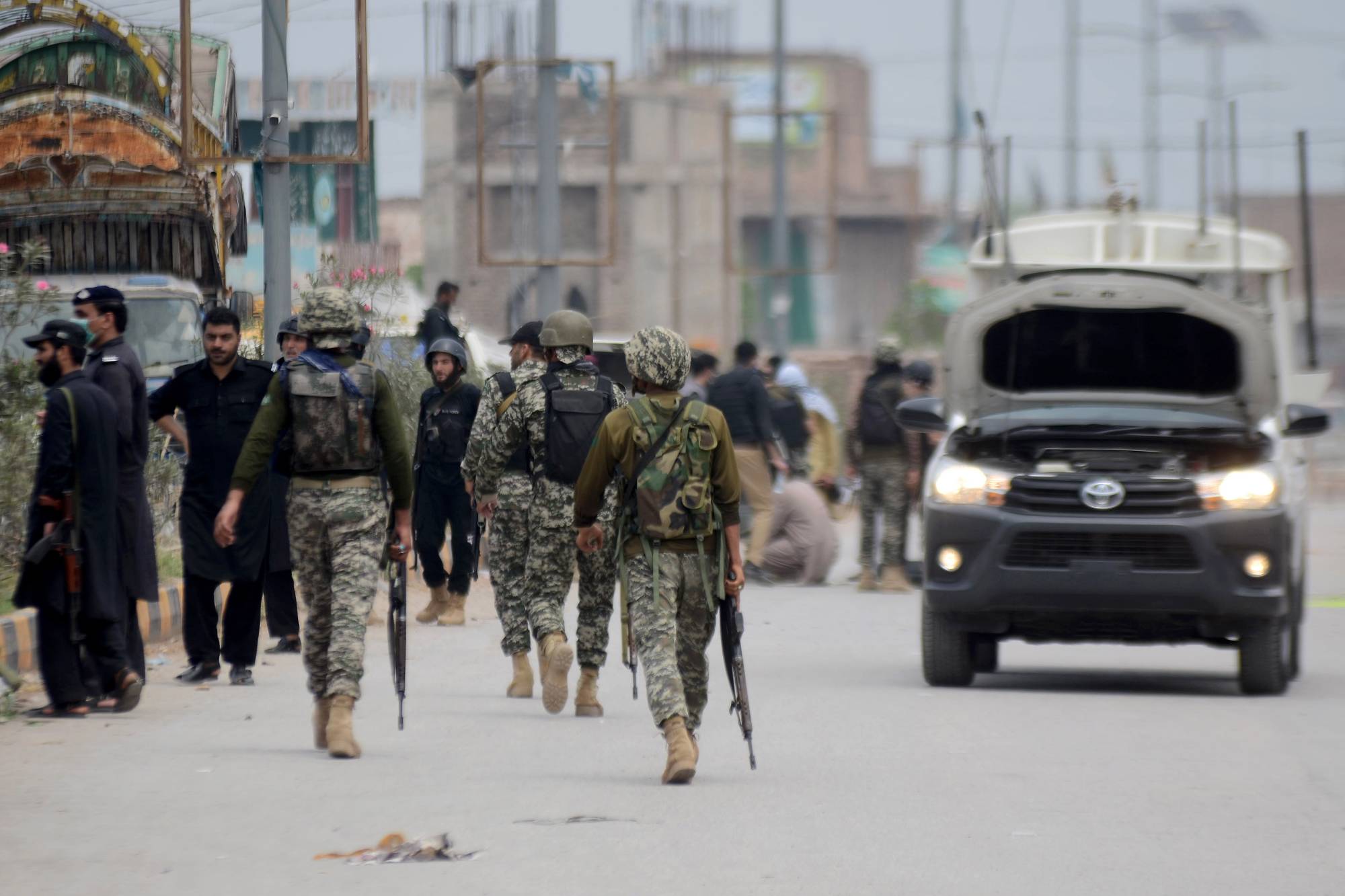 وقال حياة خان، المفتش العام بشرطة أختر للصحيفة: «فتح انتحاريان النار على رجال الشرطة في البوابة الرئيسية. وردّ رجال الشرطة بشجاعة. وانفجرت العبوتان الناسفتان، اللتان كانتا مربوطتين بجسدي المهاجمين، خلال القتال الذي أعقب ذلك».