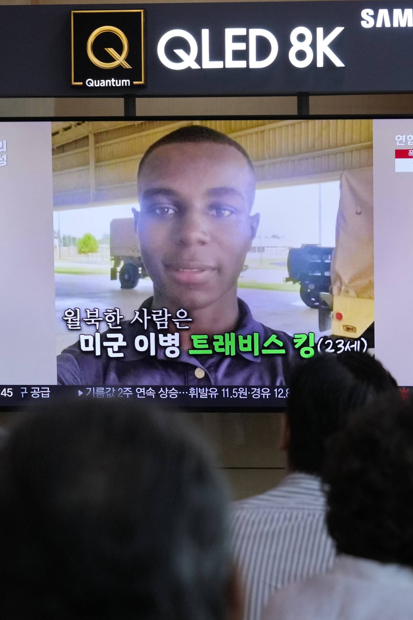 صورة الجندي الأميركي ترافيس كينغ على شاشة الأخبار في سيول (أ.ب)