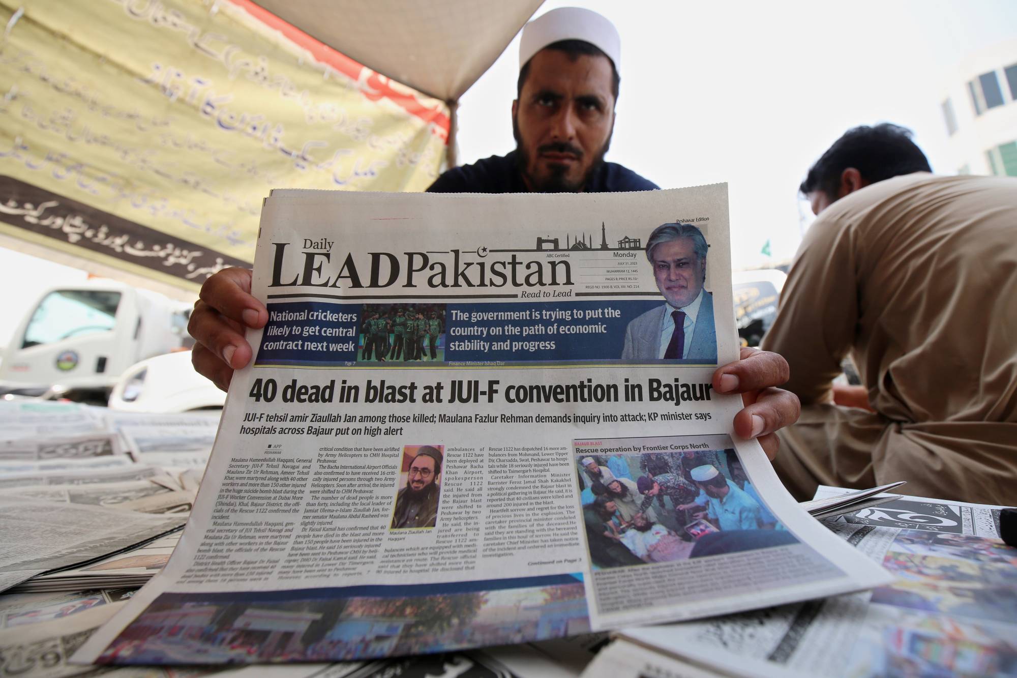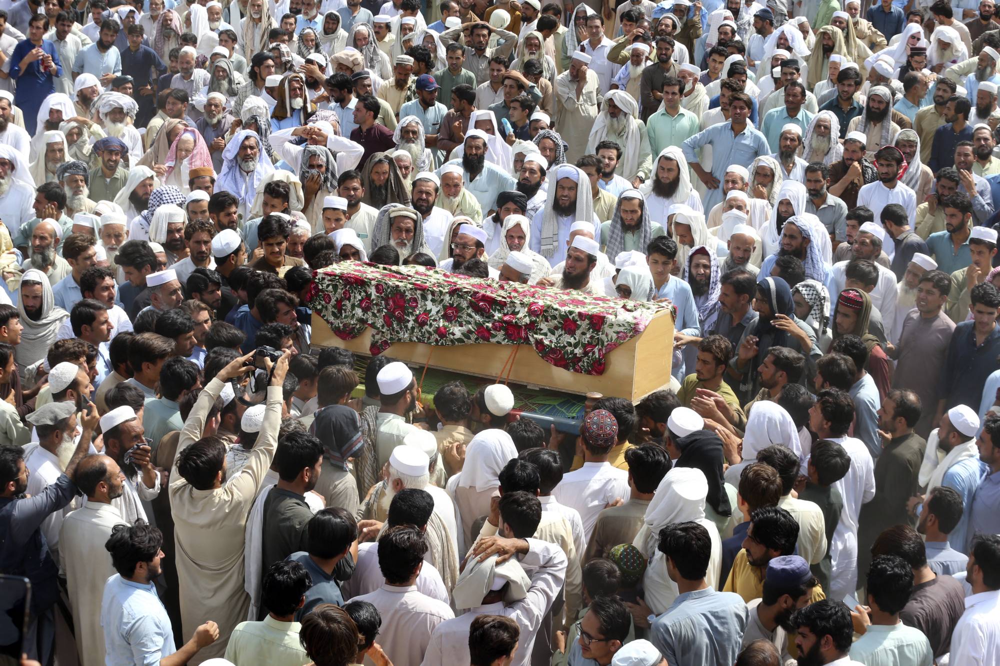 وكان أكثر من 400 من أعضاء وأنصار حزب جمعية «علماء الإسلام»، يتجمعّون تحت خيمة عند وقوع الهجوم في بلدة خار القريبة من الحدود مع أفغانستان.