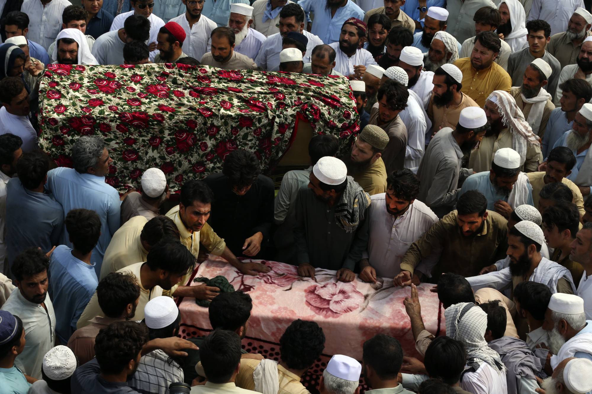 وقال فضل أمان الذي كان بالقرب من الخيمة عندما انفجرت القنبلة، لوكالة الصحافة الفرنسية: «رأيت مشهداً مدمّراً، جثثاً مبعثرة على الأرض، وكان الناس يصرخون طلباً للمساعدة».