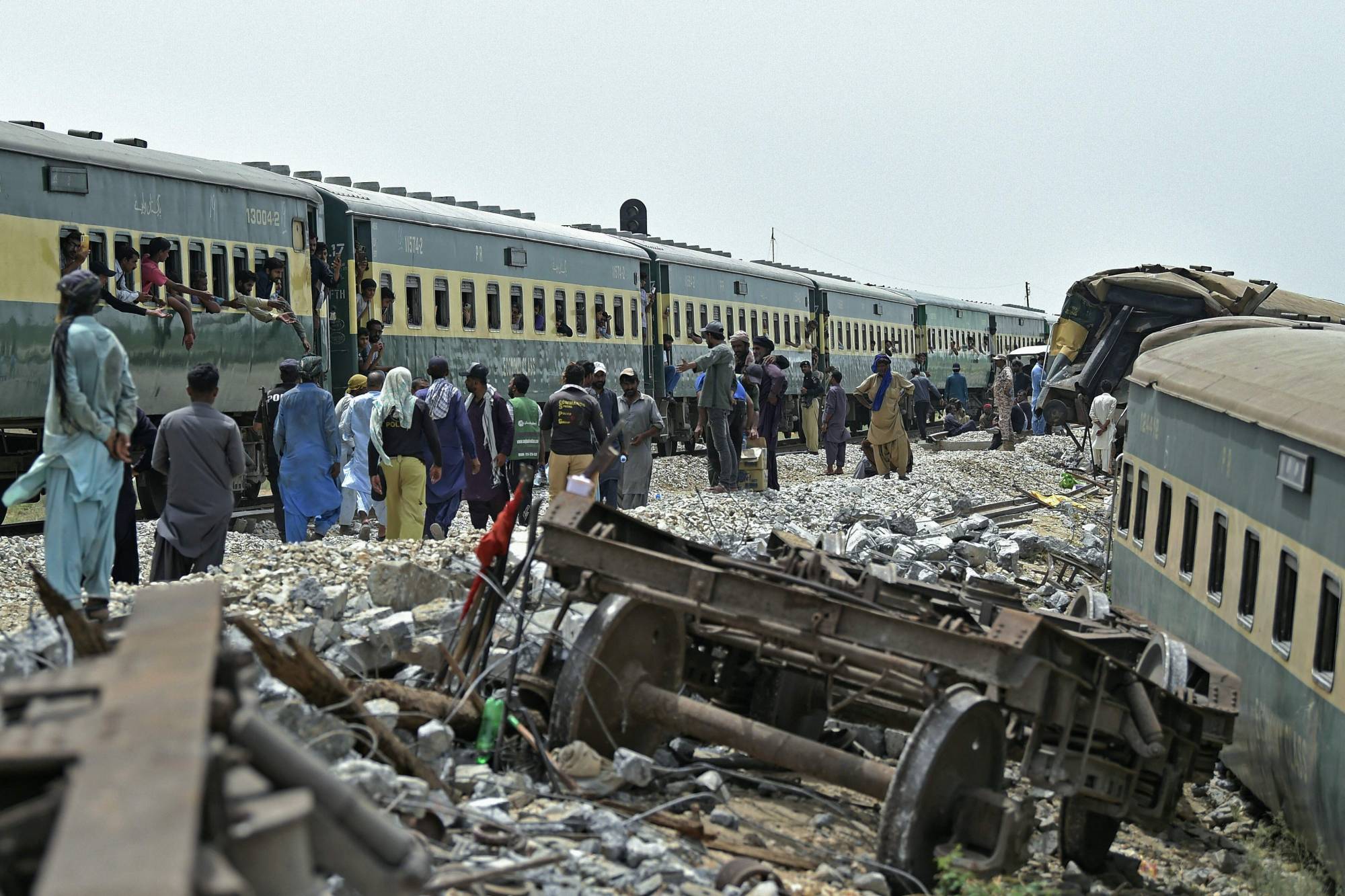 وأفاد: «أدركت فوراً أن حادثاً وقع. ركضنا ولدى وصولنا انتشلنا جثثاً وجرحى من تحت الحطام». وأكد الناطق باسم شركة سكك الحديد الباكستانية محمد أفضل كولاشي لوكالة الصحافة الفرنسية، الاثنين، أن حصيلة القتلى ارتفعت إلى 34 شخصاً.
