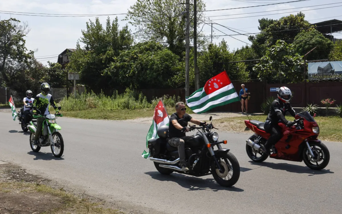 دراجون يرفعون علم أبخازيا خلال «العيد الوطني» في العاصمة سوخومي في 23 يوليو الماضي (إ.ب.أ)