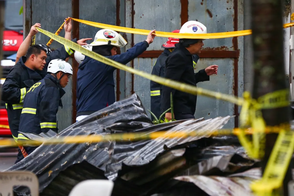 رجال الإطفاء يتفقدون مكان اندلاع الحريق في منزل يتألف من طابقين تم تحويله إلى مصنع للملابس في الفلبين (وسائل إعلام محلية)