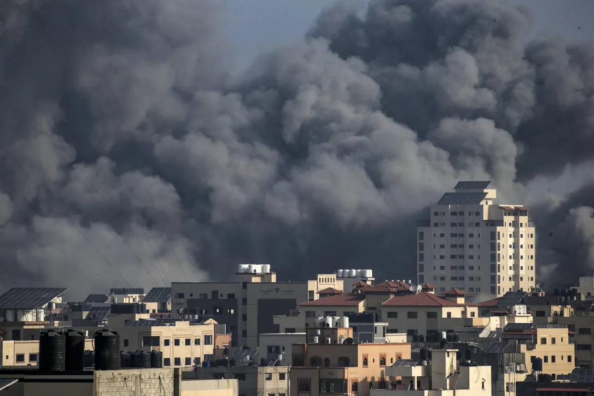الدخان يتصاعد بعد غارات جوية إسرائيلية على مدينة غزة (إ.ب.أ)