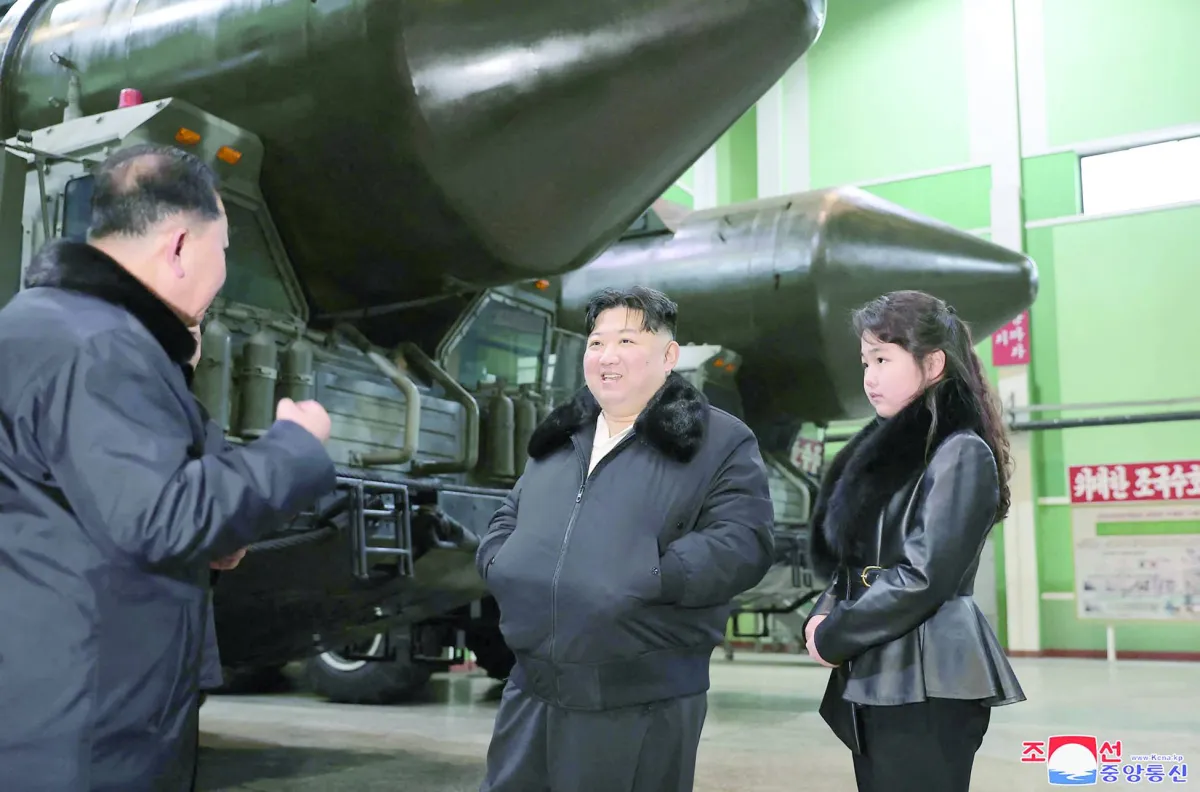 زعيم كوريا الشمالية خلال زيارته المصنع العسكري رفقة ابنته المعروفة باسم جو - آي (أ.ف.ب)