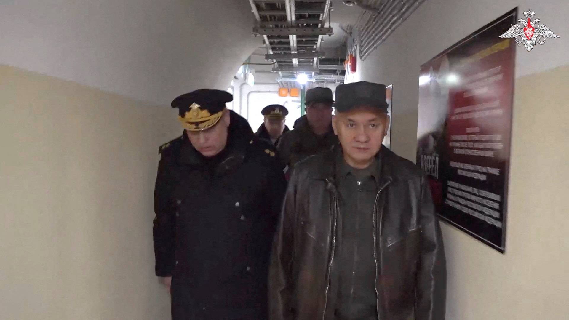 وزير الدفاع سيرغي شويغو يزور مركز قيادة أسطول البحر الأسود التابع للبحرية الروسية في مكان غير معروف (وزارة الدفاع الروسية - رويترز)