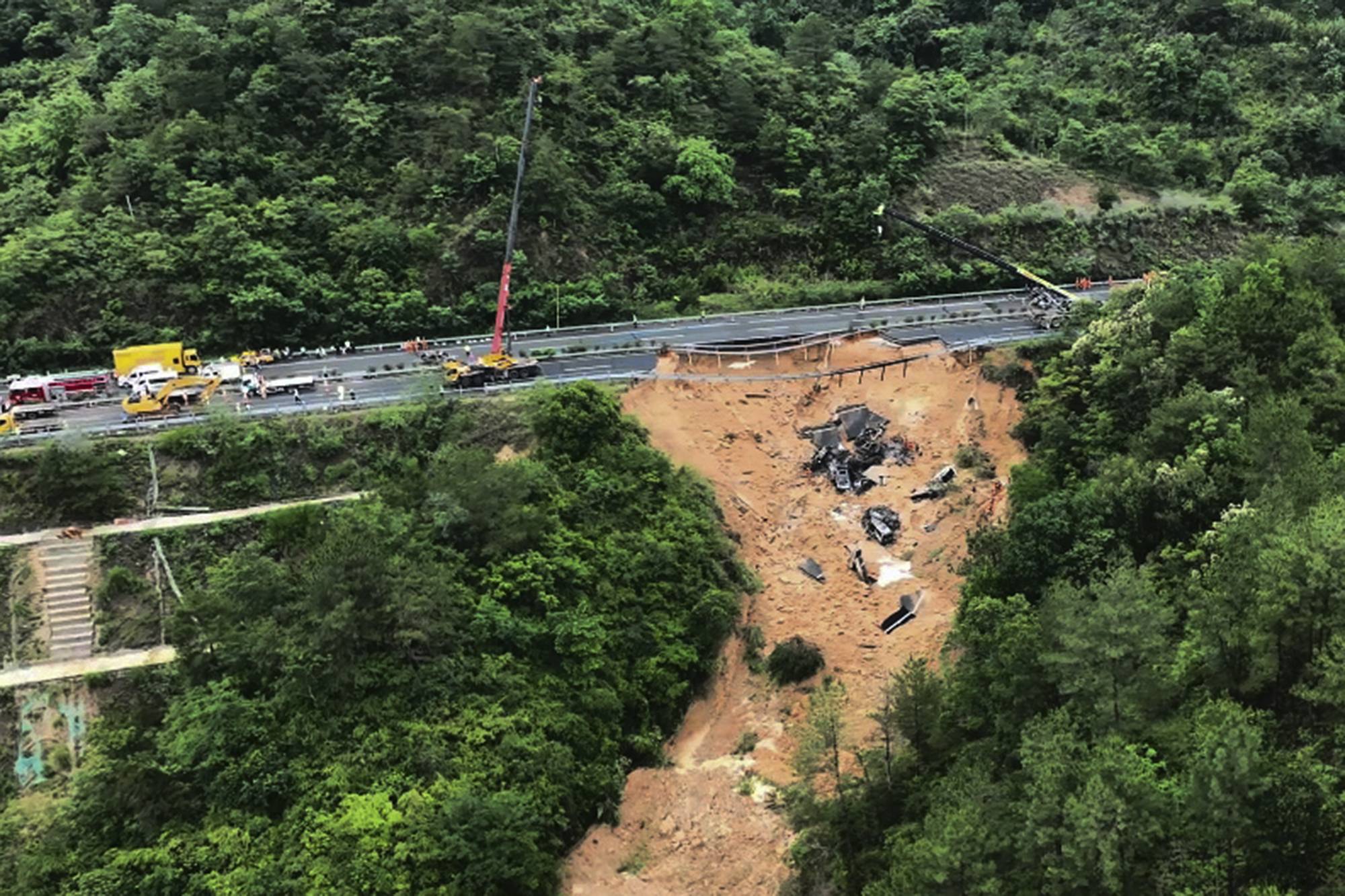 وأفادت وكالة الصين الجديدة الحكومية بأنّ 20 مركبة «حوصرت» بسبب انهيار جزء من الطريق بعد الساعة الثانية صباحاً (6:00 بتوقيت غرينتش الثلاثاء)، ما أدّى إلى مقتل أو إصابة 54 شخصاً في المجمل.