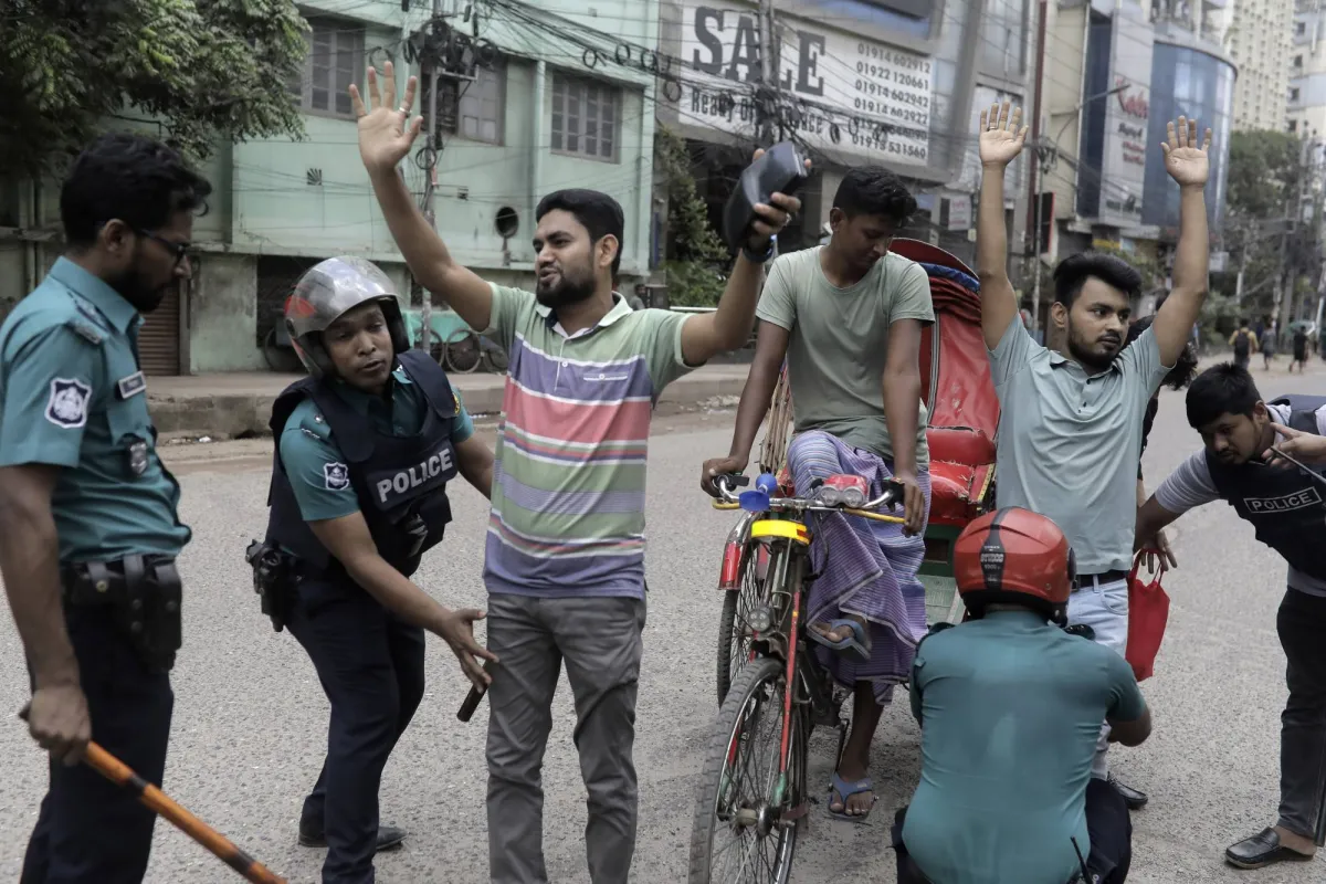 وأوقفت الشرطة عدداً من عناصر «حزب بنغلاديش القومي»، أكبر أحزاب المعارضة في البلاد، و«الطلاب ضد التمييز»، أكبر المجموعات المنظمة للتظاهرات. وقال وزير الداخلية عبد الزمان خان إن حظر التجول الذي فُرض، السبت، سيبقى سارياً «إلى حين تحسُّن الوضع».