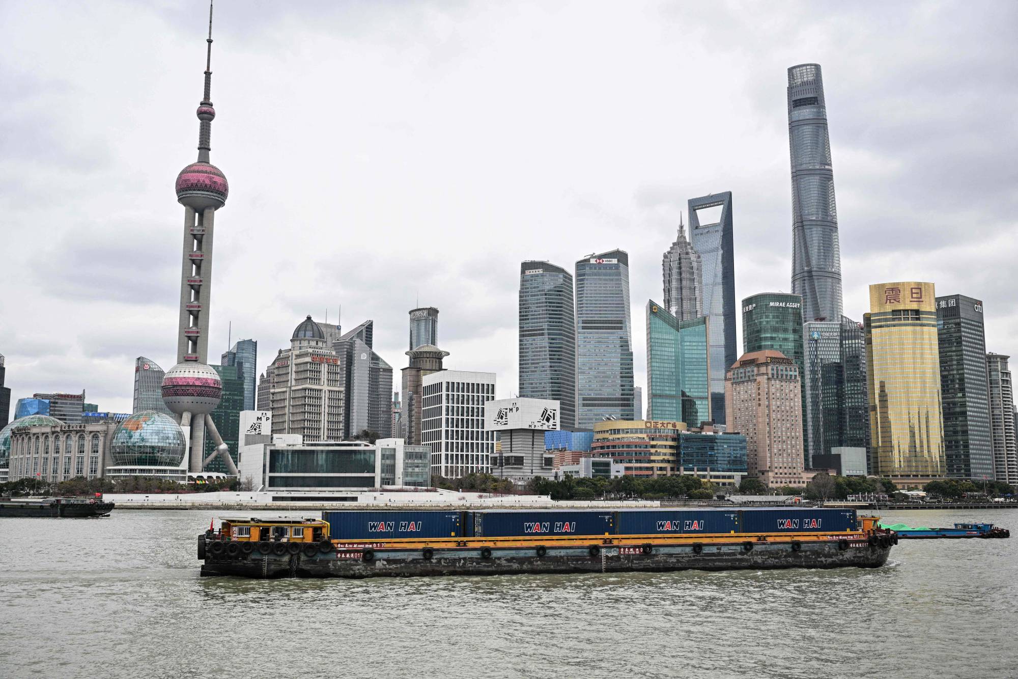 سفن تُبحر في نهر هوانغبو بمدينة شنغهاي الصينية (أ.ف.ب)