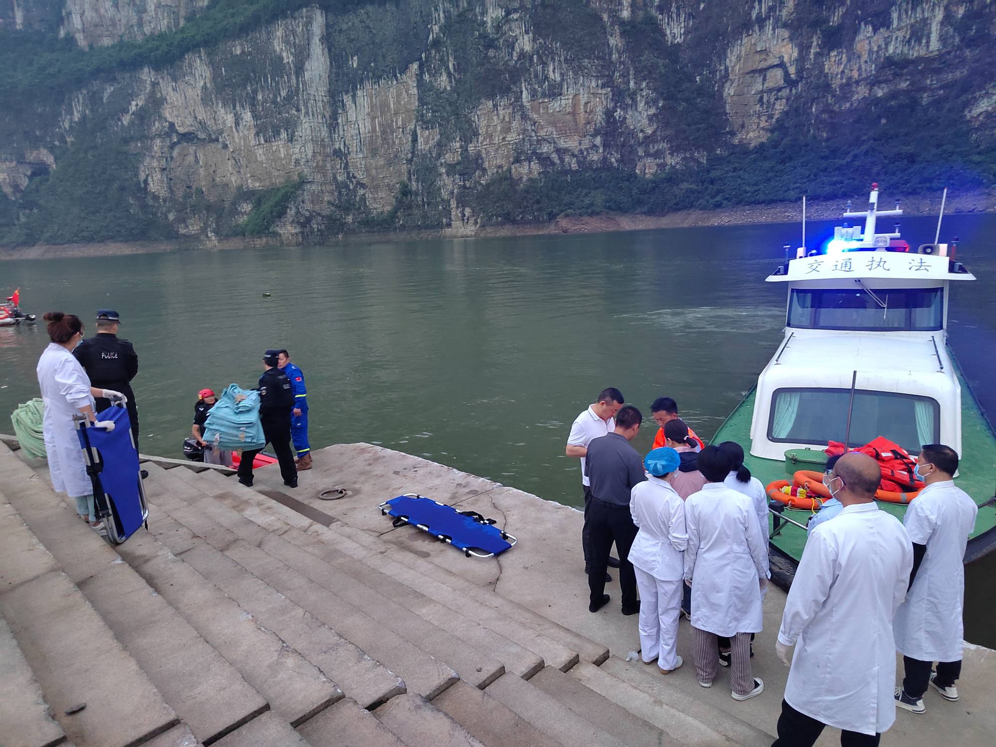 عمليات بحث وإنقاذ في موقع انقلاب قاربي ركاب في مدينة تشيانشي بمقاطعة قويتشو جنوب غربي الصين (إ.ب.أ)