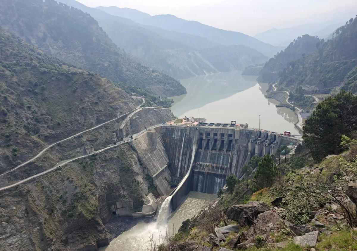 منظر لسد باجليهار المعروف أيضاً باسم مشروع باجليهار للطاقة الكهرومائية على نهر تشيناب الذي يتدفق من كشمير الهندية إلى باكستان في تشاندركوت بمنطقة غامو (رويترز)