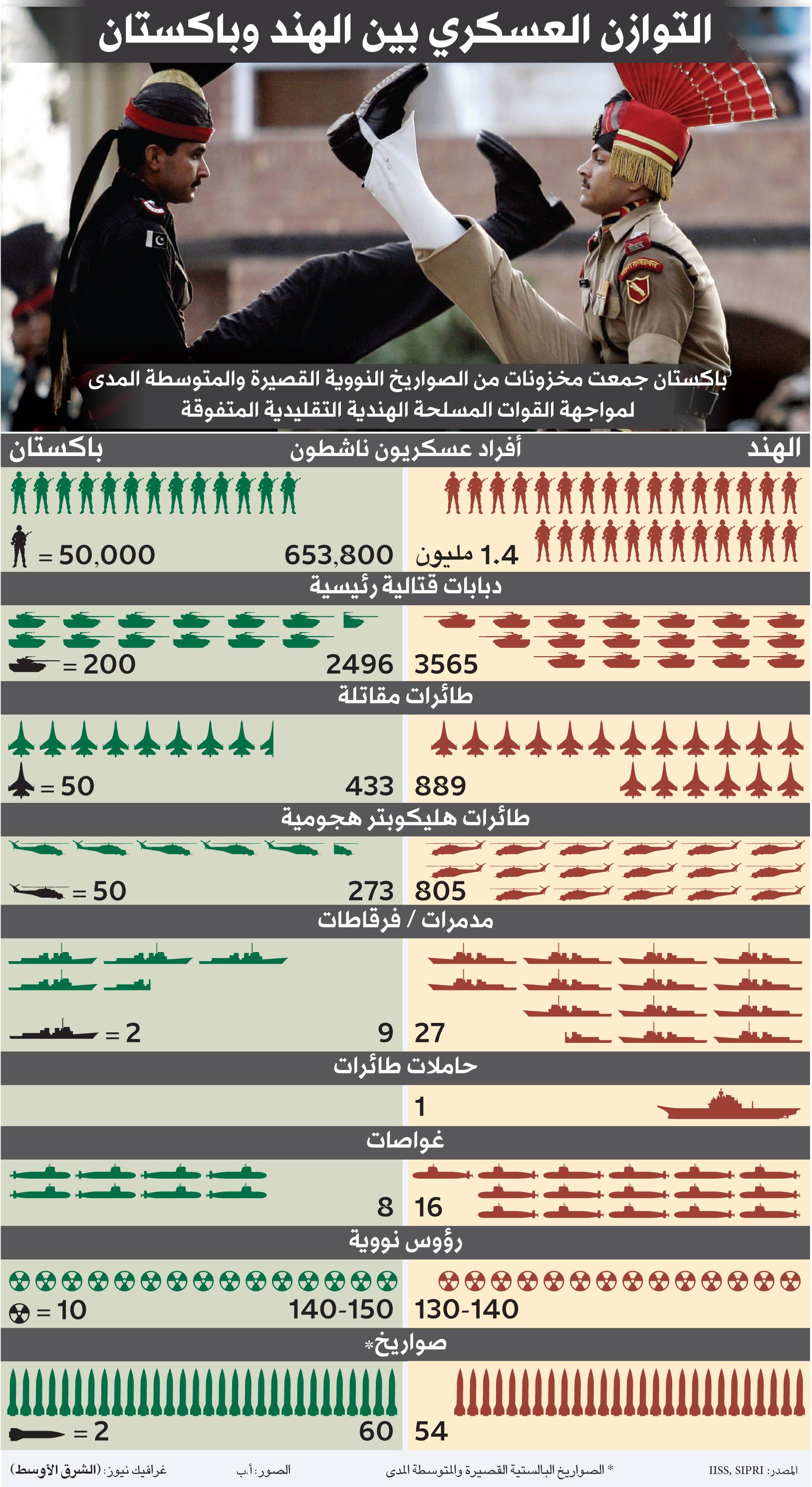 يمتلك كلٌّ من البلدين نحو 170 رأساً نووياً، وفقاً لتقييم صادر عن «جمعية الحد من التسلح».