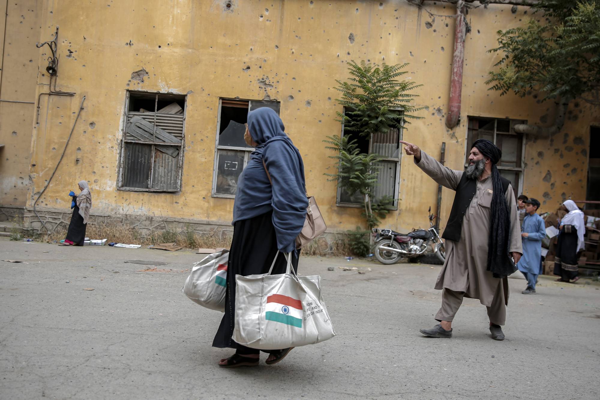 لاجئون أفغان يتلقّون حصصاً غذائية تبرعت بها الحكومة الهندية في كابل بأفغانستان 1 أغسطس 2025 (إ.ب.أ)