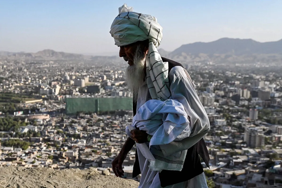 رجل أفغاني يسير على طول تلة تطل على كابل في 3 أغسطس 2025 (إ.ب.أ)