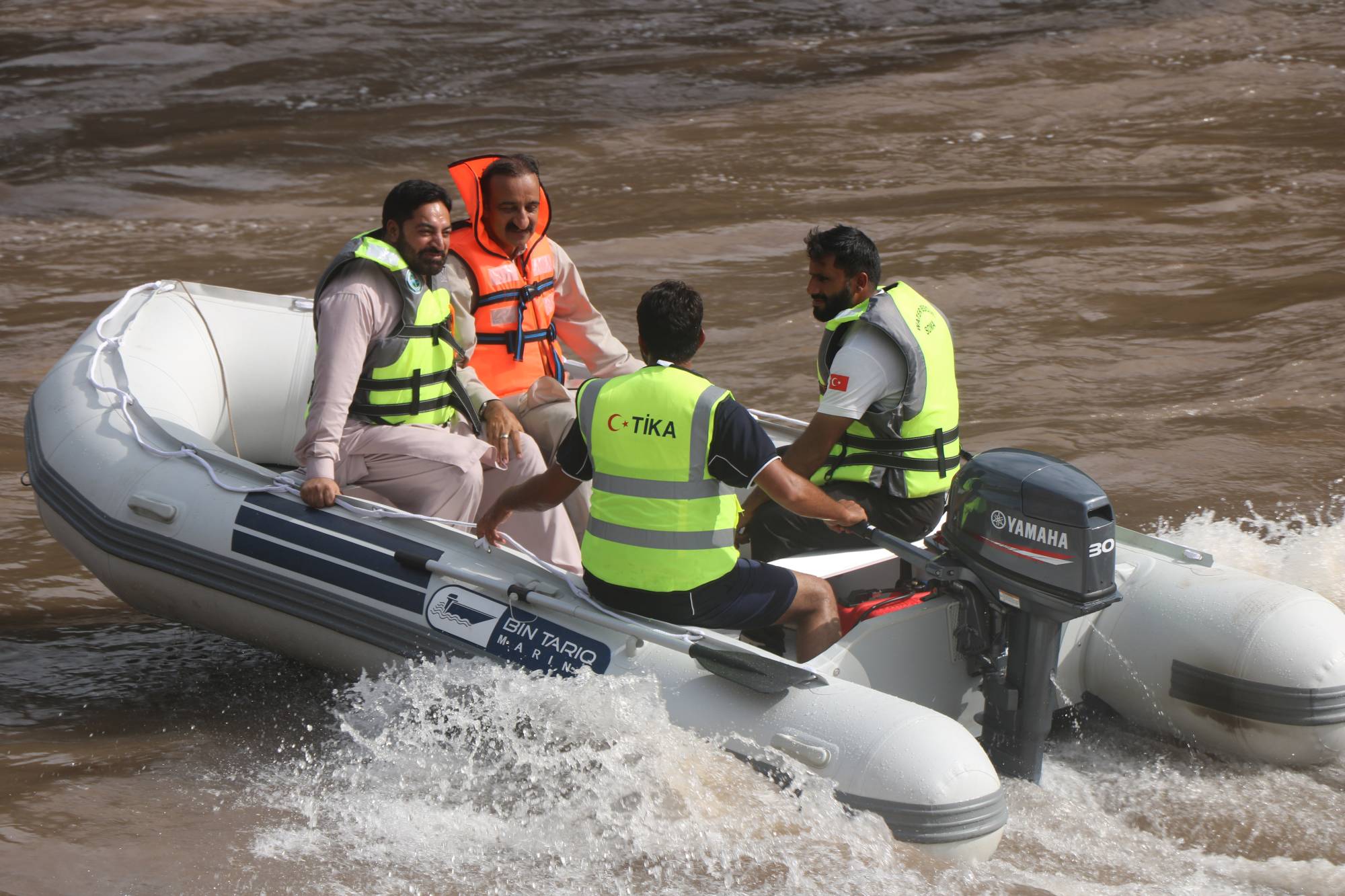 يشارك أفراد من فرق الإنقاذ في تدريبات تُجرى في حالات الكوارث الطبيعية والفيضانات في نهر جيلوم بمظفر آباد في كشمير الخاضع للإدارة الباكستانية... 27 أغسطس 2025 (إ.ب.أ)