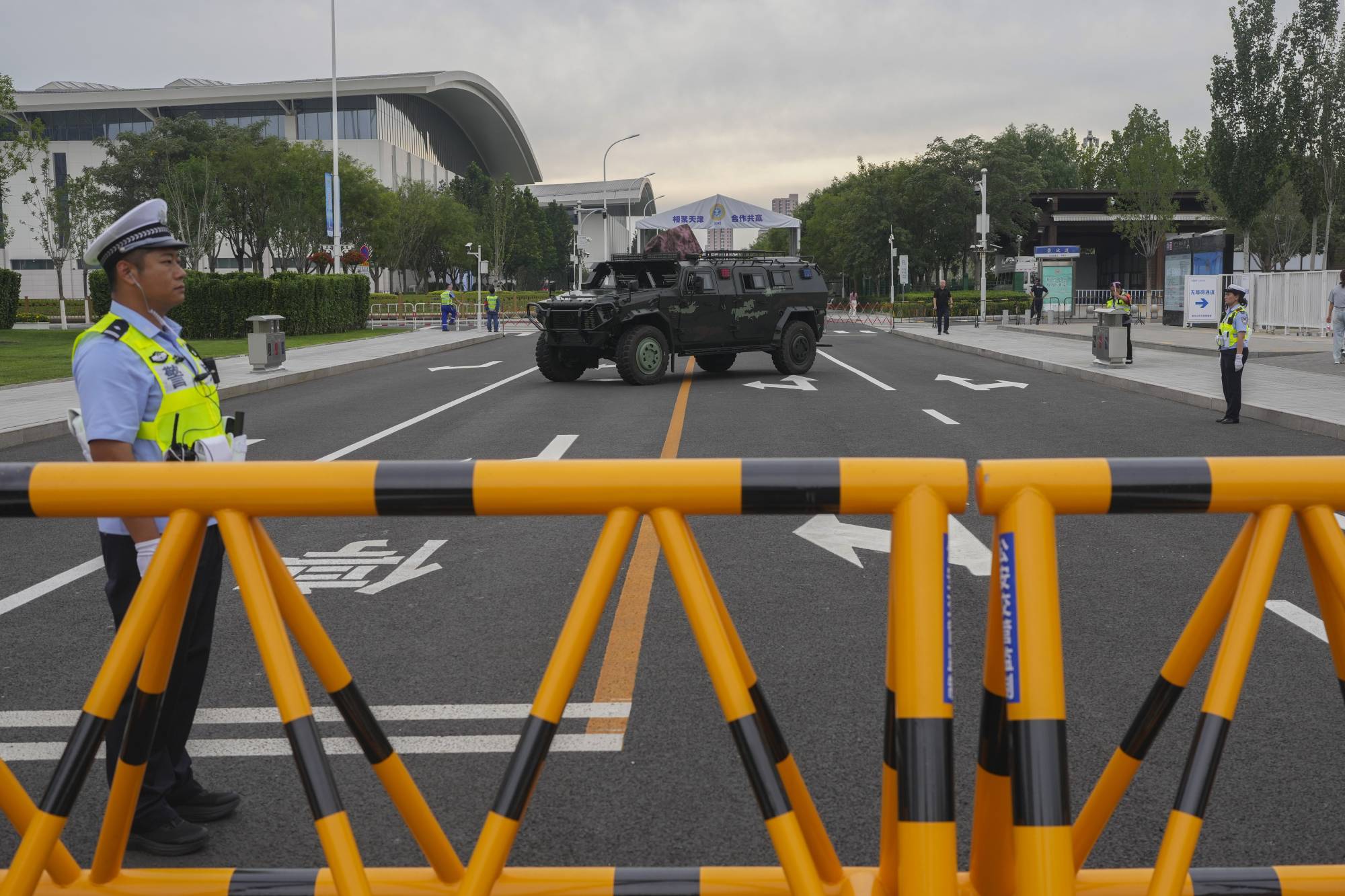 الشرطة تحرس مكان انعقاد قمة منظمة شنغهاي للتعاون في تيانجين (أ.ب)