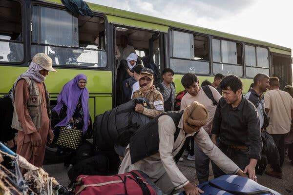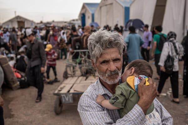 وصول الأفغان المطرودين من إيران إلى مركز معالجة في بلدة إسلام قلعة الحدودية بأفغانستان الأسبوع الماضي (نيويورك تايمز)