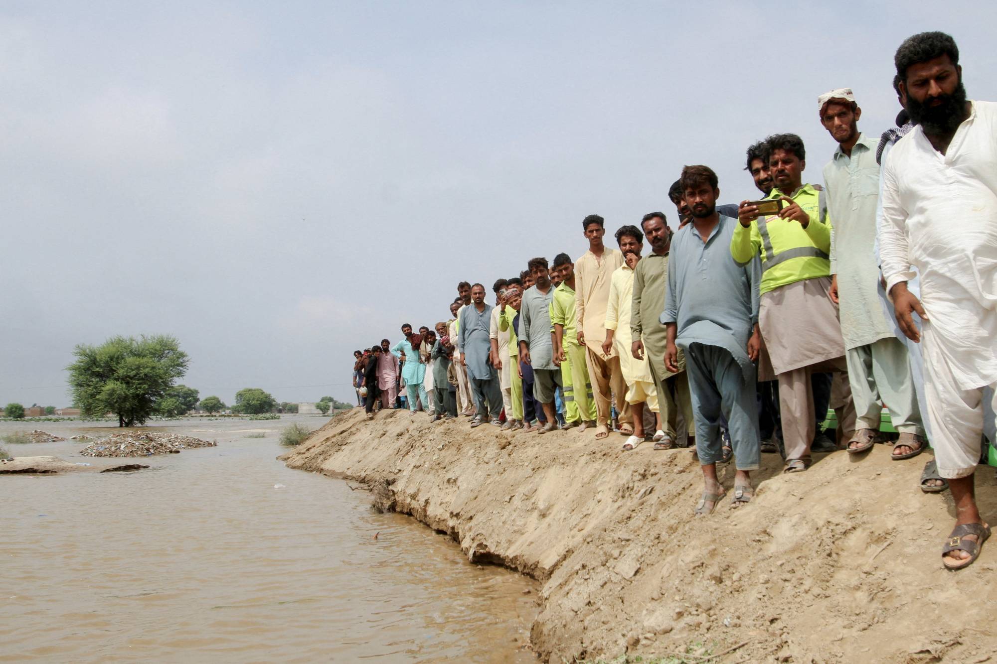 قام رجال الإنقاذ بدعم من الجيش الباكستاني بإجلاء ما يقرب من مائة ألف شخص طوال الليل من مدينة بإقليم البنجاب وسط البلاد، وتعرض بعضهم لدرجات حرارة شديدة في الخيام والمناطق المفتوحة بعد أن غمرت مياه الفيضانات منازلهم وجرفت الأراضي الزراعية.