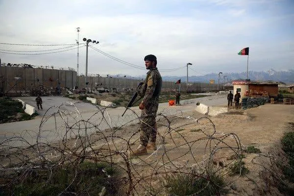 جندي أفغاني خارج أسوار قاعدة «باغرام» (متداولة)