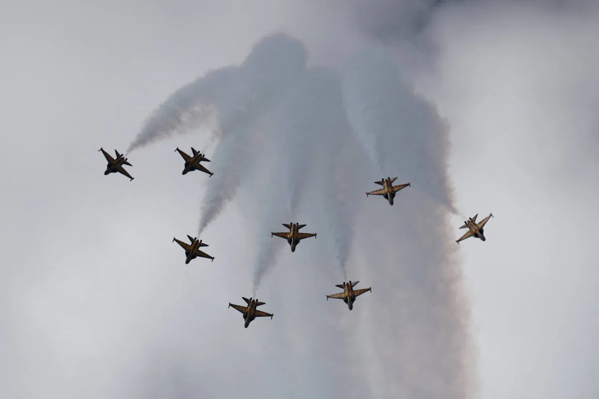 واستهل المنظمون المعرض بتشكيلات من العروض الجوية على مدى ثلاثة أيام انطلاقاً من إحدى القواعد الجوية. وتضمنت العروض طلعات جوية لطائرة مقاتلة مطورة حديثاً من طراز «كيه إف -21». وستتبع الاحتفالات الأسبوع المقبل معارض تجارية في مركز مؤتمرات يمتد على مساحة شاسعة.