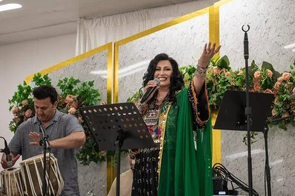 بدا الضوء ساطعاً بشكل قاسٍ. أما المكان، فلا يزيد على قاعة أفراح في ضاحية شمال غربي لندن. وبمجرد دخول المغنية الأفغانية، نغمة، مرتديةً شالاً مطرّزاً بخيوط ذهبية، انفجر الجمهور بالتصفيق والمشاعر الجياشة.