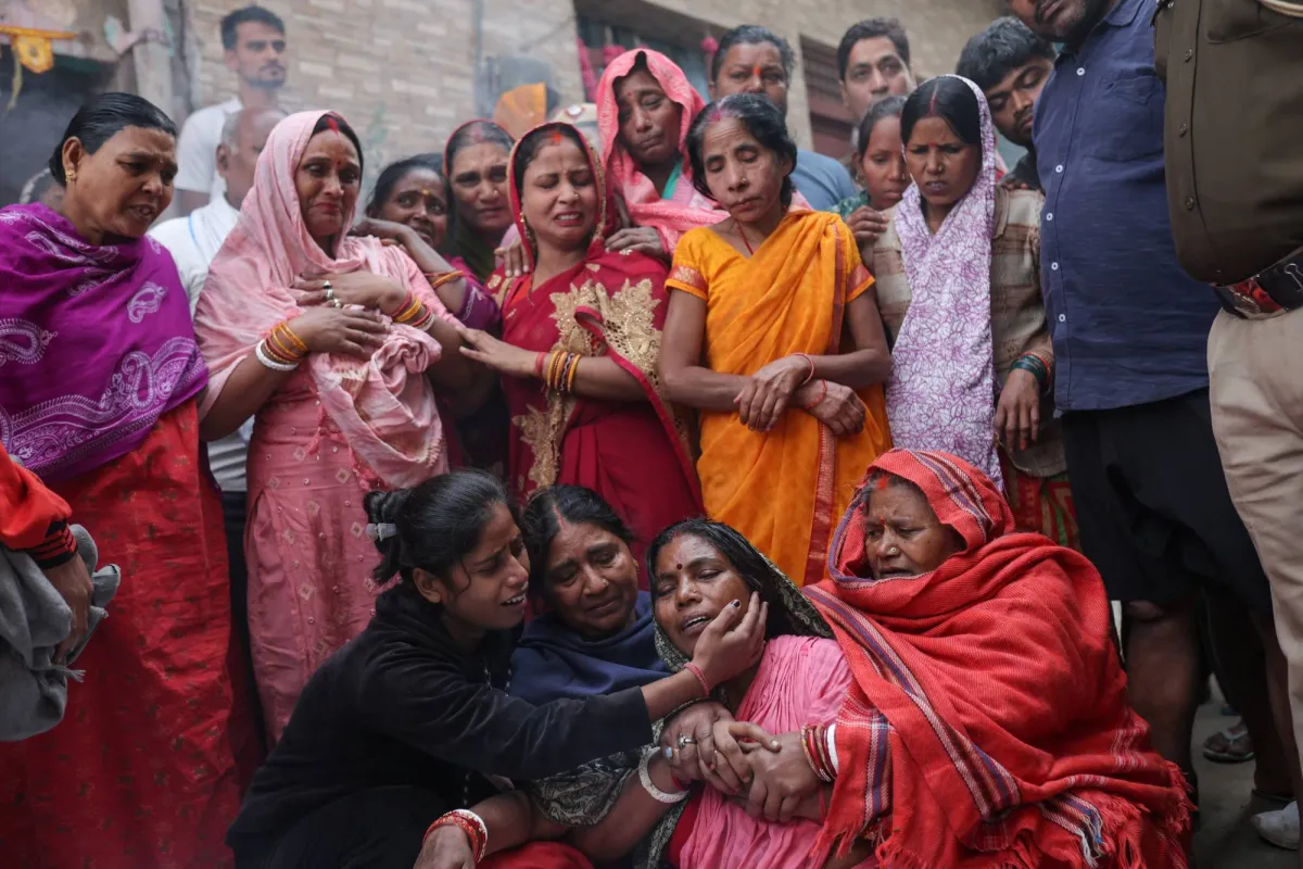 أفراد عائلة أحد قتلى انفجار السيارة المفخخة قبيل تشييعه في دلهي الثلاثاء (رويترز)