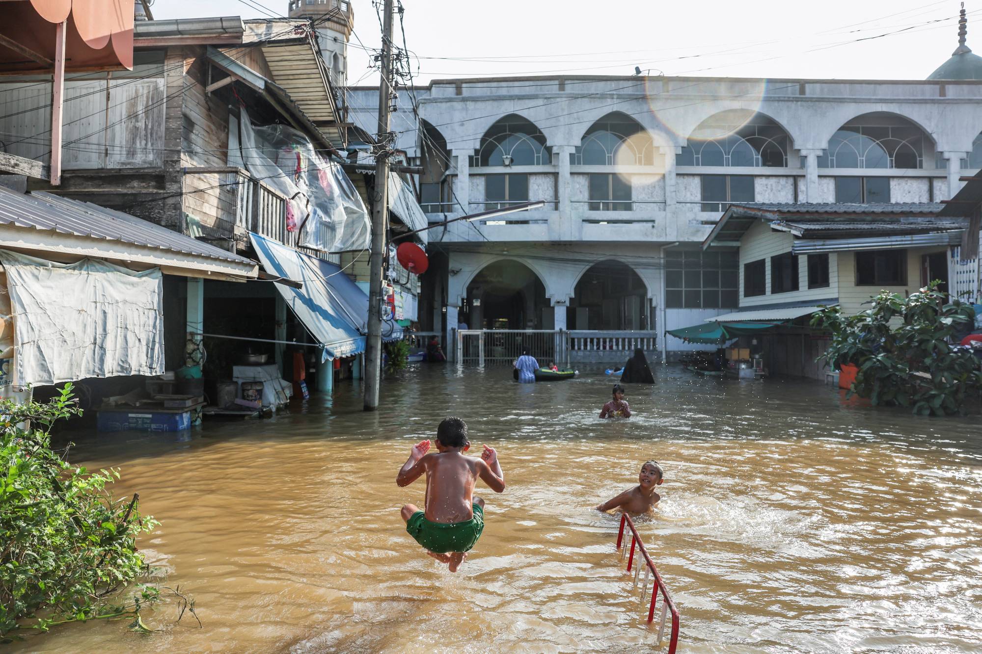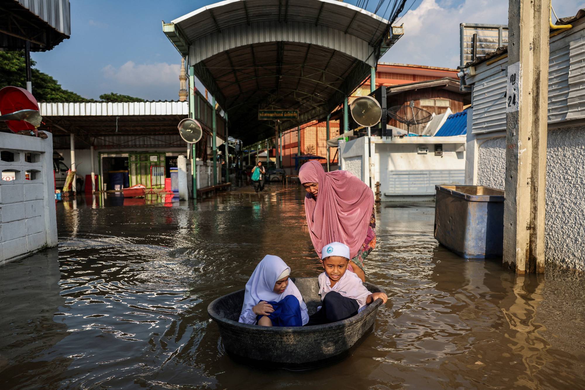 تايلانديون يتنقلون في قوارب بين المنازل بعد أسوأ فيضانات منذ سنوات (صور)