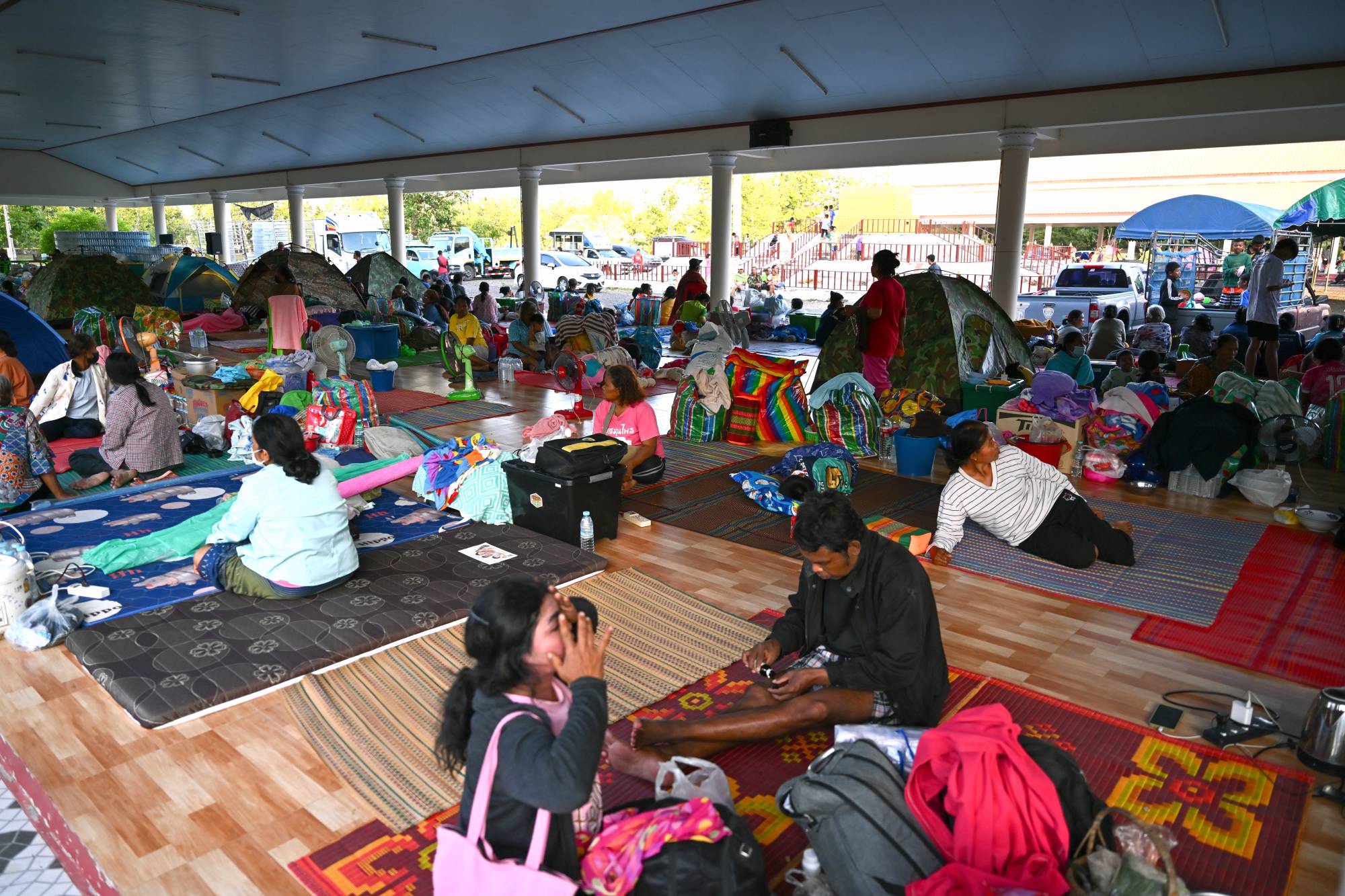 قرويون تايلانديون يستريحون أثناء إخلائهم عقب اشتباكات بين القوات التايلاندية والكمبودية (إ.ب.أ)