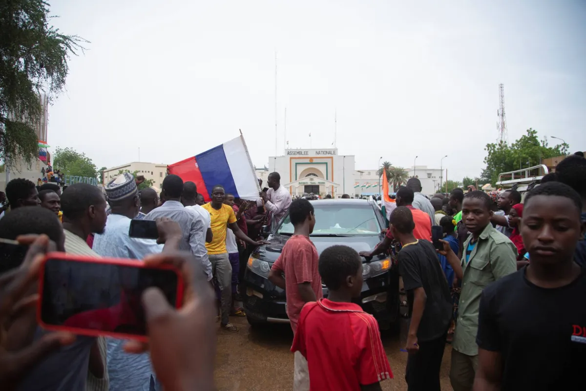 وعلى كثرة الانتقادات للانقلاب، إلا أن الموقف الفرنسي كان الأوضح في التعبير عن ثقل الخسارة بإطاحة الحليف الوثيق، بازوم، حيث ندد الرئيس الفرنسي إيمانويل ماكرون بـأقسى العبارات بالانقلاب العسكري، الذي وصفه بـ«غير الشرعي والخطير جداً، ليس فقط بالنسبة للنيجريين، لكن بالنسبة لكل المنطقة... لهذه الأسباب، نحن ندعو لإطلاق سراح الرئيس بازوم والعودة إلى المسار الدستوري». وما زالت باريس تعد أن الوضع في نيامي لم يستقر بعد، وأن تراجع الانقلابيين ما زال ممكناً. ومن الواضح أنها تراهن على ضغوط أفريقية على انقلابيي النيجر. وبرّر الجنرال تشياني الانقلاب بـ«تدهور الوضع الأمني». وقال إنّه في عهد الرئيس بازوم كان هناك «خطاب سياسي» أراد أن يجعل الناس يعتقدون أنّ «كلّ شيء على ما يرام»، بينما هناك «الواقع القاسي مع ما يحمله من موت ونازحين وإذلال وإحباط».