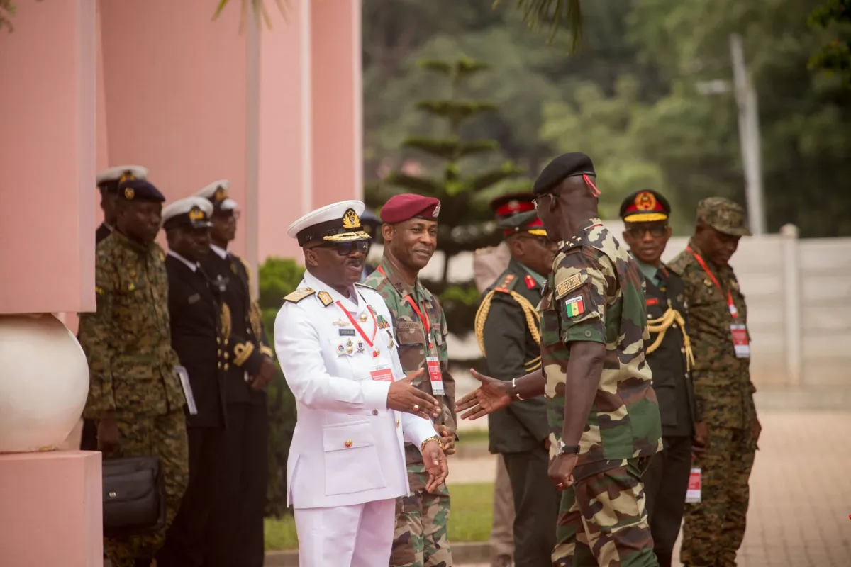 رئيس أركان غانا لدى استقباله قائداً عسكرياً من السنغال في أكرا، الخميس (أ.ف.ب)