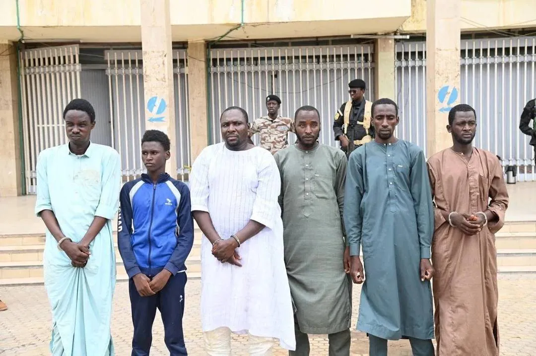 نجل مؤسس «بوكو حرام» يرتدي بدلة رياضية زرقاء ومعه عناصر «داعش» الموقوفون من طرف تشاد (إعلام محلي)