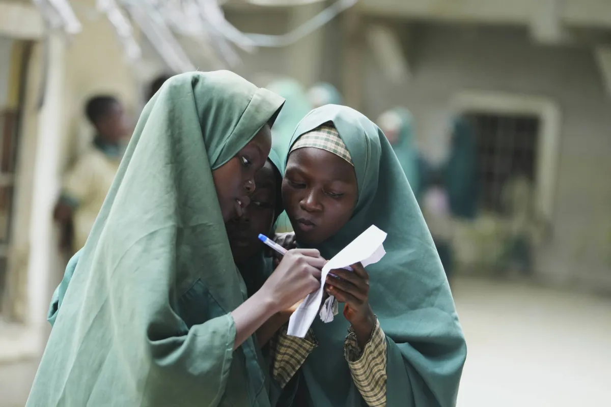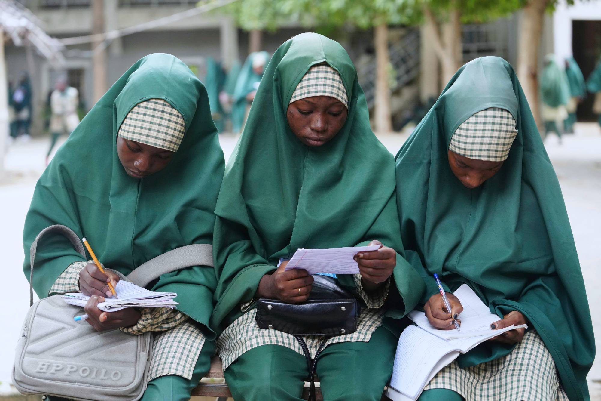 طالبات بمدرسة «مؤسسة المستقبل الإسلامية» في مايدوغوري بنيجيريا يراجعن دروسهن خلال فترة الاستراحة يوم الخميس 24 يوليو 2025 (أ.ب)
