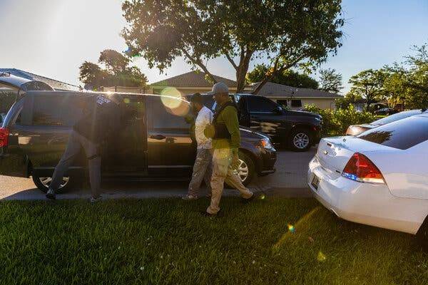 ضباط الهجرة خلال عملية اعتقال بفلوريدا في مايو (نيويورك تايمز)